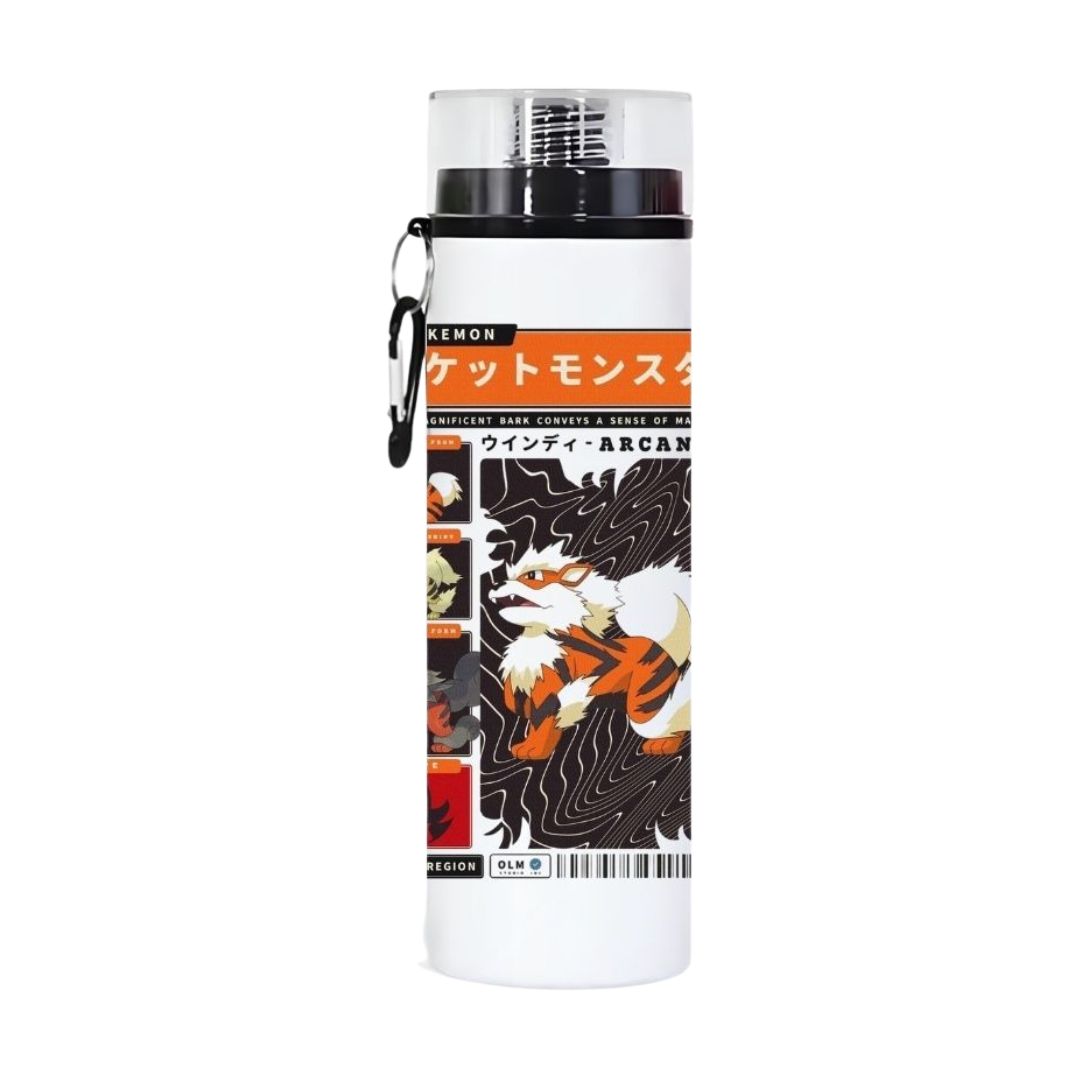 Botella de Agua Arcanine, inspirada en el Pokémon de Tipo fuego. Con un diseño vibrante, esta botella es perfecta para entrenadores Pokémon de todas las edades.