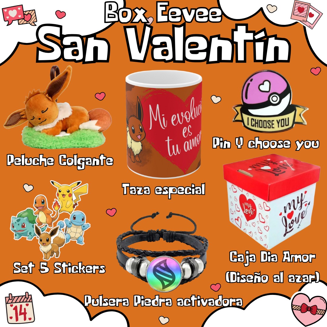 Box Eevee, edición especial del Día del Amor, un regalo único y lleno de detalles encantadores inspirados en Eevee, Pokémon de tipo normal, introducido en la primera generación, Kanto. Dentro de esta caja cuidadosamente diseñada, encontrarás:
