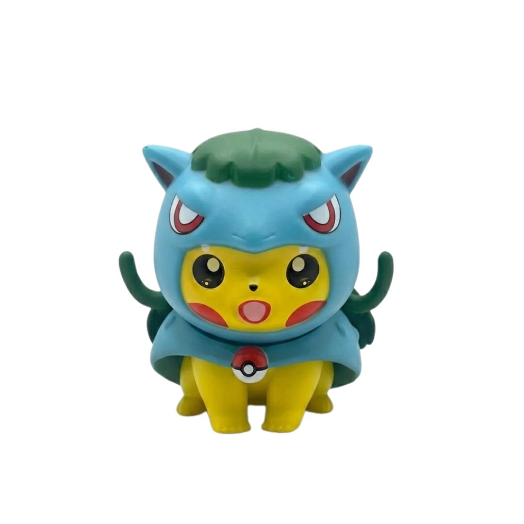 Esta increíble promoción Pokémon, incluye una figura de Pikachu con un disfraz de Venasaur, que muestra los detalles más característicos de este personaje de tipo planta/veneno. La figura mide aproximadamente 8 a 9 centímetros, un tamaño ideal para exhibir en tu colección.
