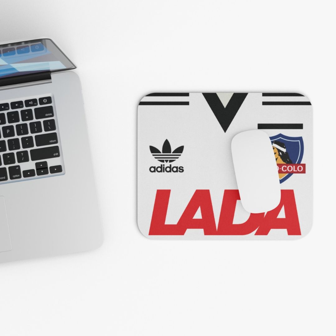 Mouse Pad de Colo Colo, inspirado en la icónica camiseta blanca de 1991. Este diseño rinde homenaje al año más importante en la historia del club chileno, cuando el «Eterno Campeón» conquistó la cima de América al levantar la Copa Libertadores.