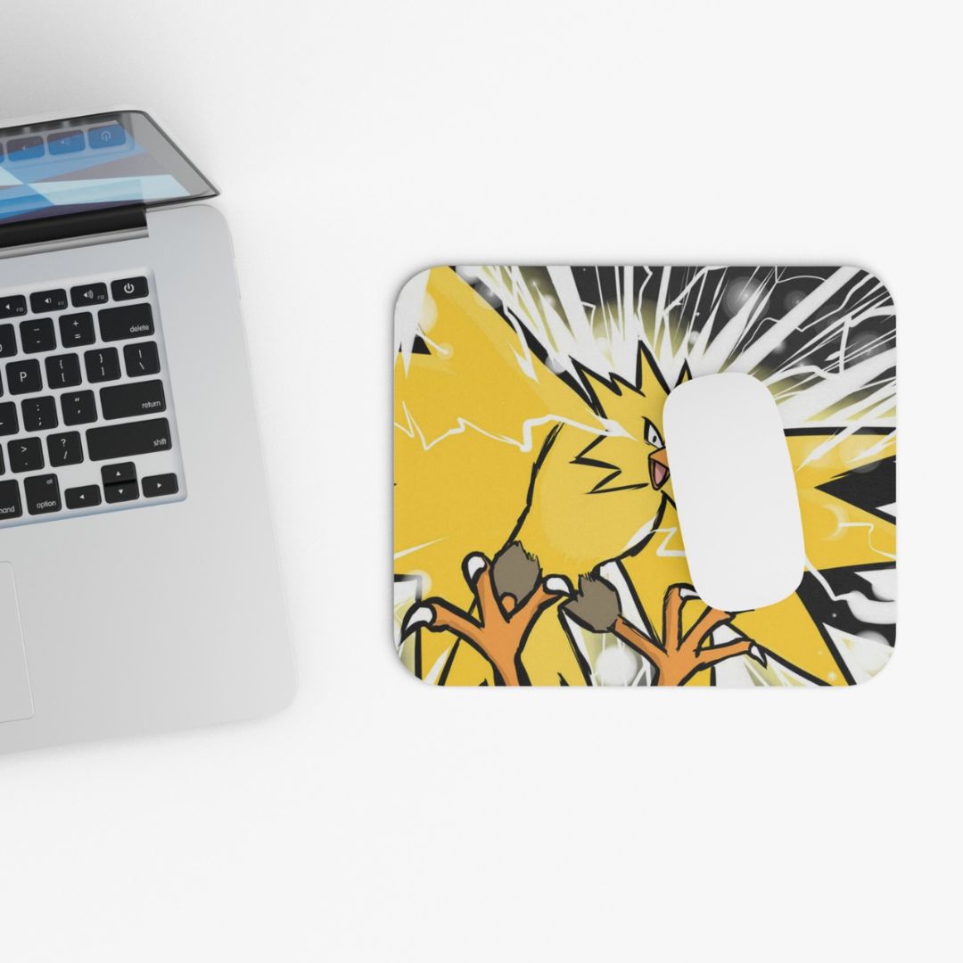 Añade a tu espacio de trabajo o gamer este Mouse Pad con diseño inspirado en Zapdos, uno de los Pokémon legendario. Con un tamaño de 24 cm de ancho y 20 cm de alto aproximados, este accesorio es ideal para quienes buscan un soporte cómodo y eficiente para su mouse.