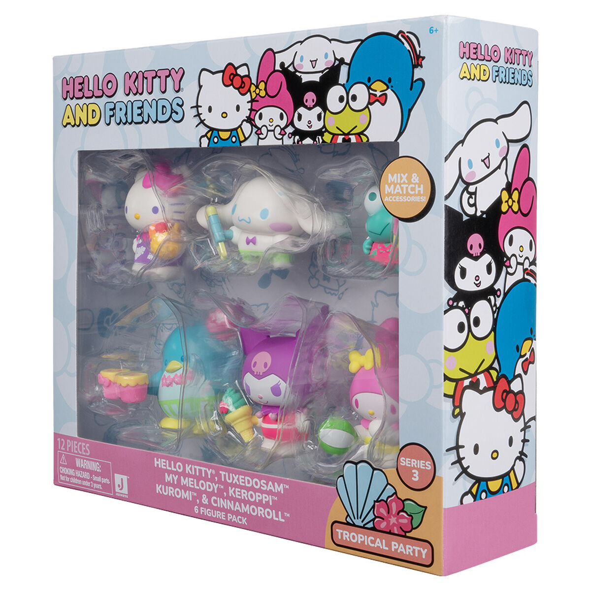 Lleva la diversión del verano a tu colección con este increíble Pack de 6 Figuras Coleccionables de Hello Kitty and Friends. Esta edición especial «Tropical Party» (Serie 3) presenta a tus personajes favoritos de Sanrio con outfits playeros, colores vibrantes y accesorios temáticos listos para una fiesta bajo el sol.