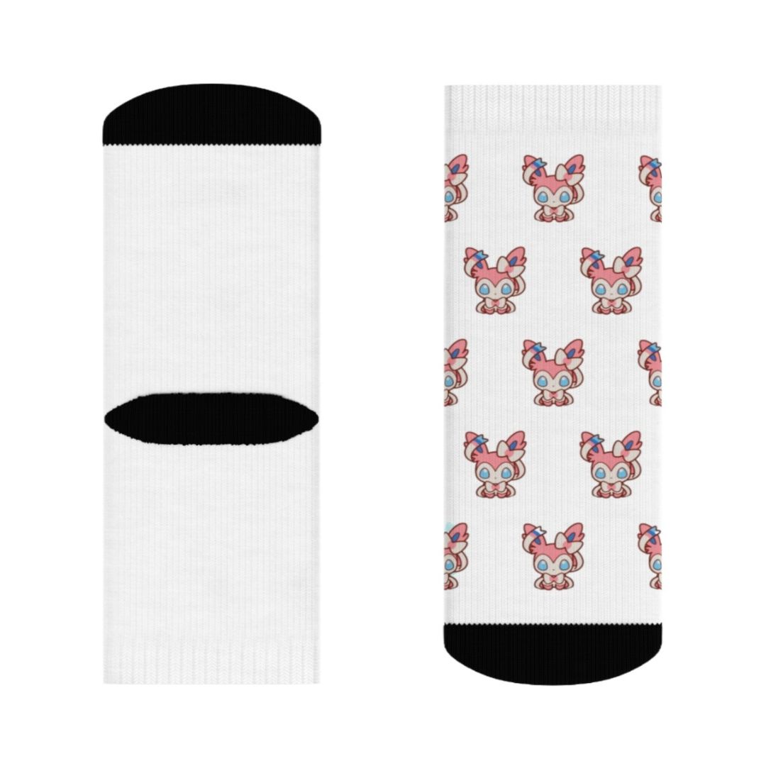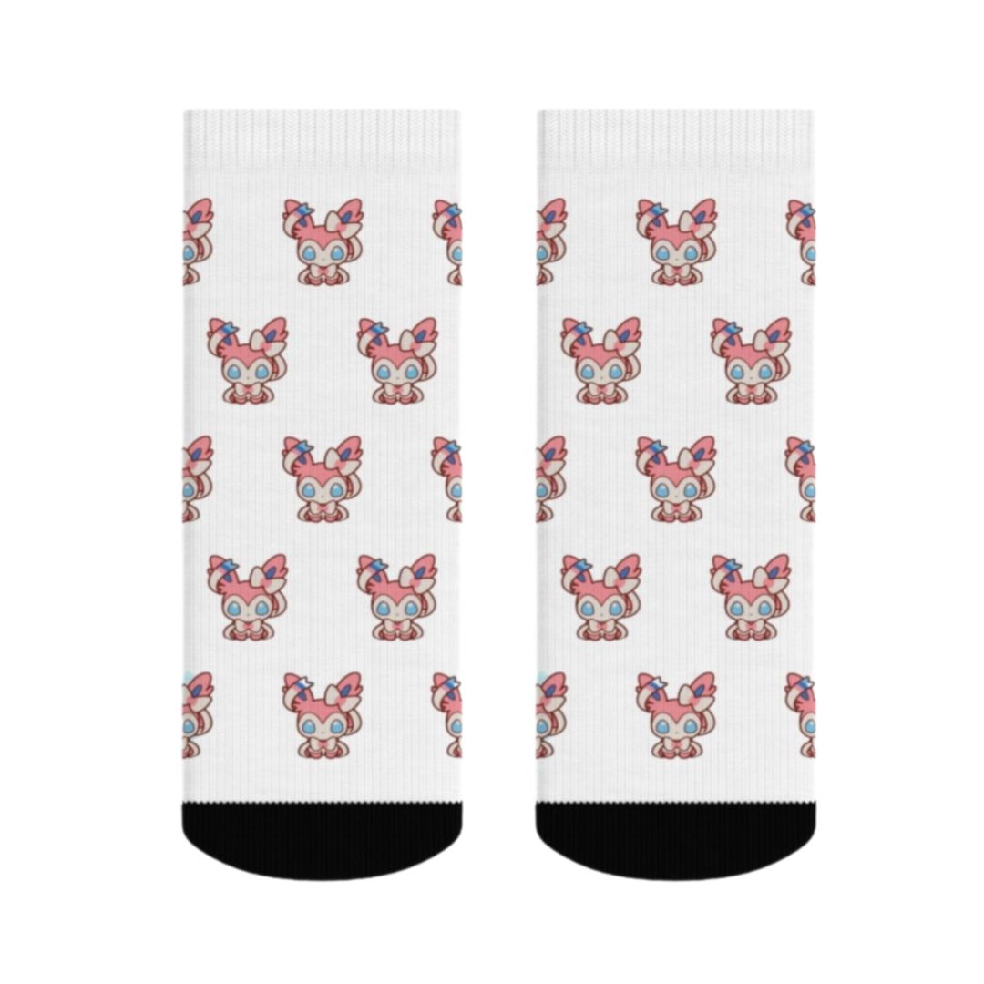 Lleva este par de calcetines cortos Pokémon, con diseño inspirado en Sylveon, una de las evoluciones de Eevee, ideal para fanáticos de este personaje.