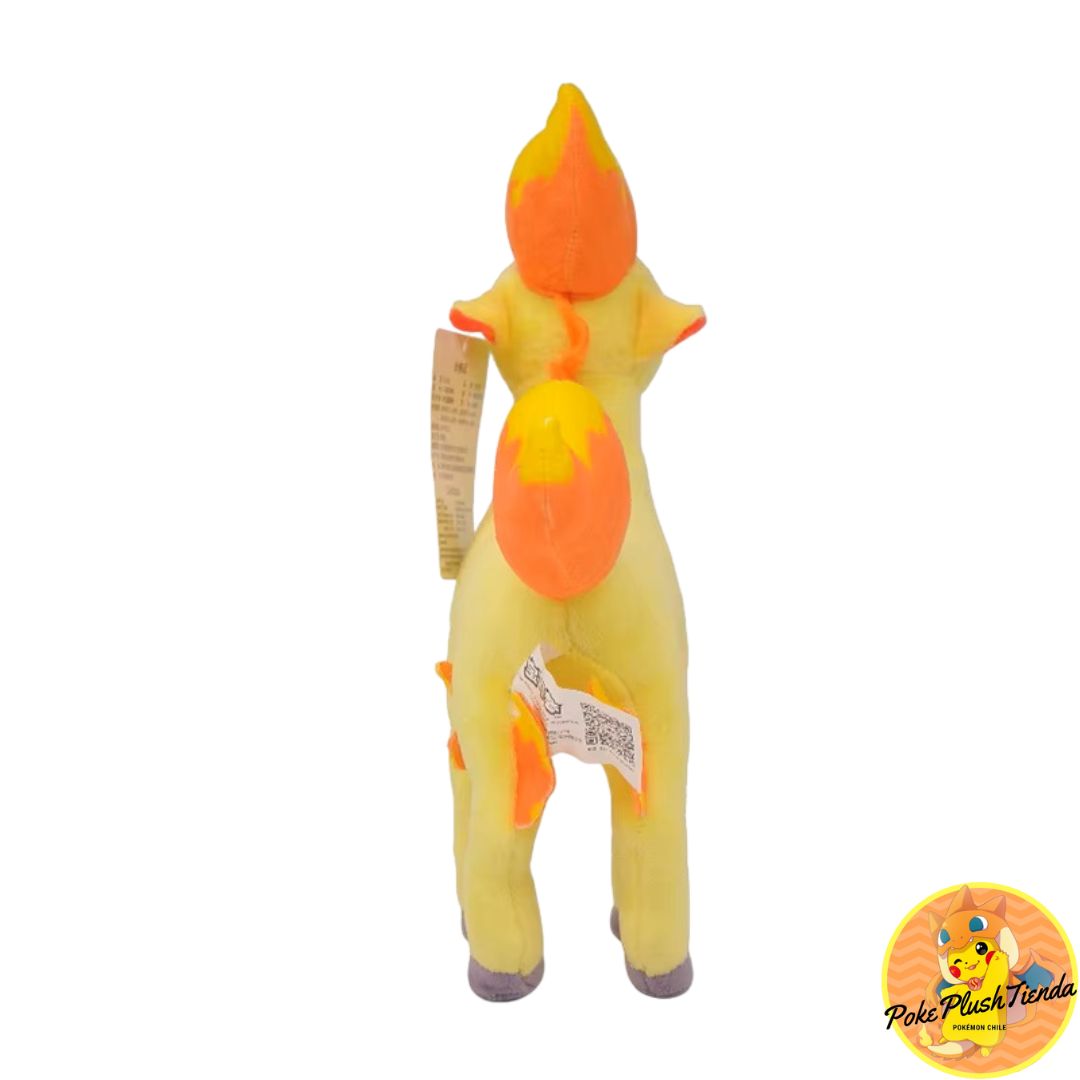 Este peluche de Ponyta captura toda la esencia del famoso Pokémon de tipo Fuego. Con un suave pelaje, su cuerpo ese caracteriza por tener una cola de fuego naranja y amarilla que parecen cobrar vida, como si estuvieran danzando al viento.