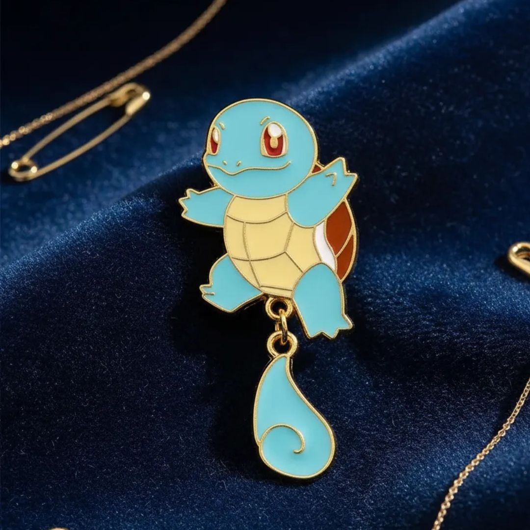Pin coleccionable con diseño de Squirtle, uno de los personajes más reconocidos del universo Pokémon. Presenta un acabado detallado y colores definidos que destacan la apariencia clásica del personaje, convirtiéndolo en un accesorio atractivo para fanáticos y coleccionistas.