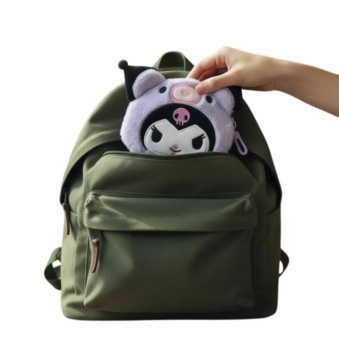 El pack de monedero y llavero de Kuromi es un conjunto encantador confeccionado con felpa de alta calidad. El monedero tiene unas dimensiones de aproximadamente 15 cm de ancho, 10 cm de alto y 5 cm de profundidad, lo que lo hace lo suficientemente espacioso para guardar tus monedas, billetes o pequeños objetos personales.