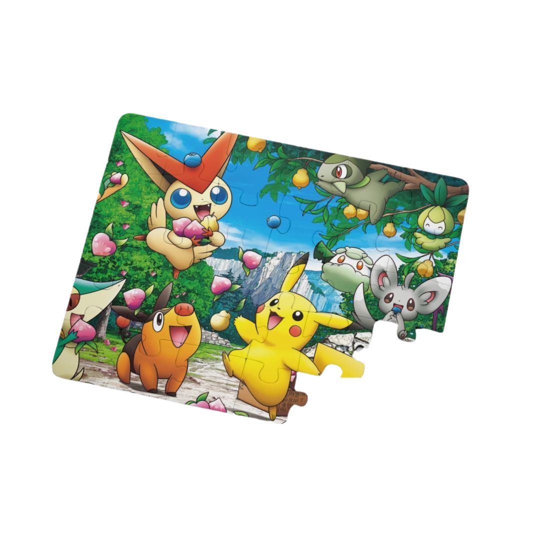 Este puzzle de 30 piezas reúne a dos de los Pokémon más adorables y carismáticos: Victini y Pikachu, el ícono. Con un diseño colorido y vibrante, este rompecabezas es ideal para estimular la concentración, coordinación y la paciencia en niños y coleccionistas por igual. Cada pieza está ilustrada, mostrando a Victini y Pikachu en un entorno alegre y luminoso, perfecto para transmitir energía positiva.