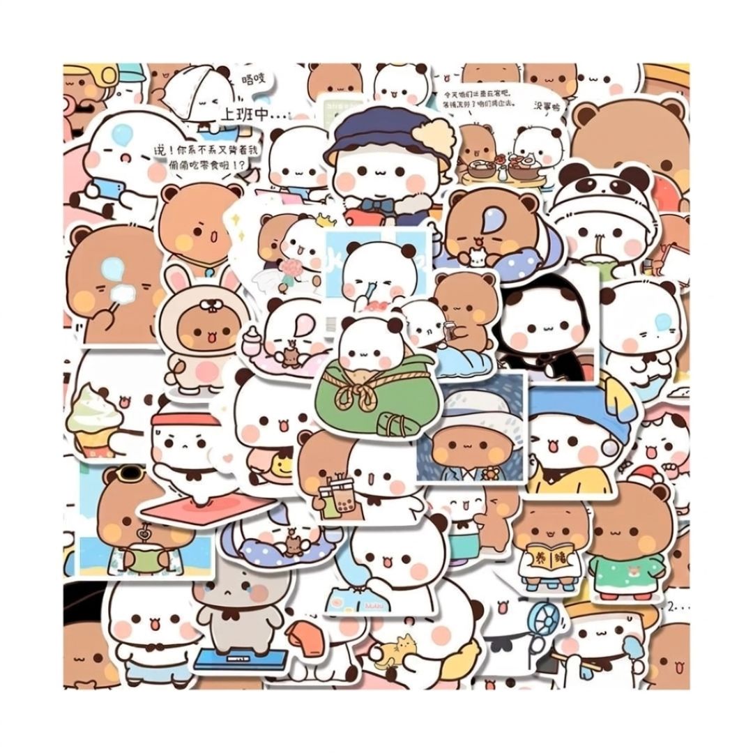 Descubre el encantador Set de 25 stickers de Bubu y Dudu, ositos de amor. Cada sticker, con un tamaño de 4 cm x 4 cm aproximados, y presenta a estos adorables personajes famosos por ser incondicionales y estar siempre juntos.