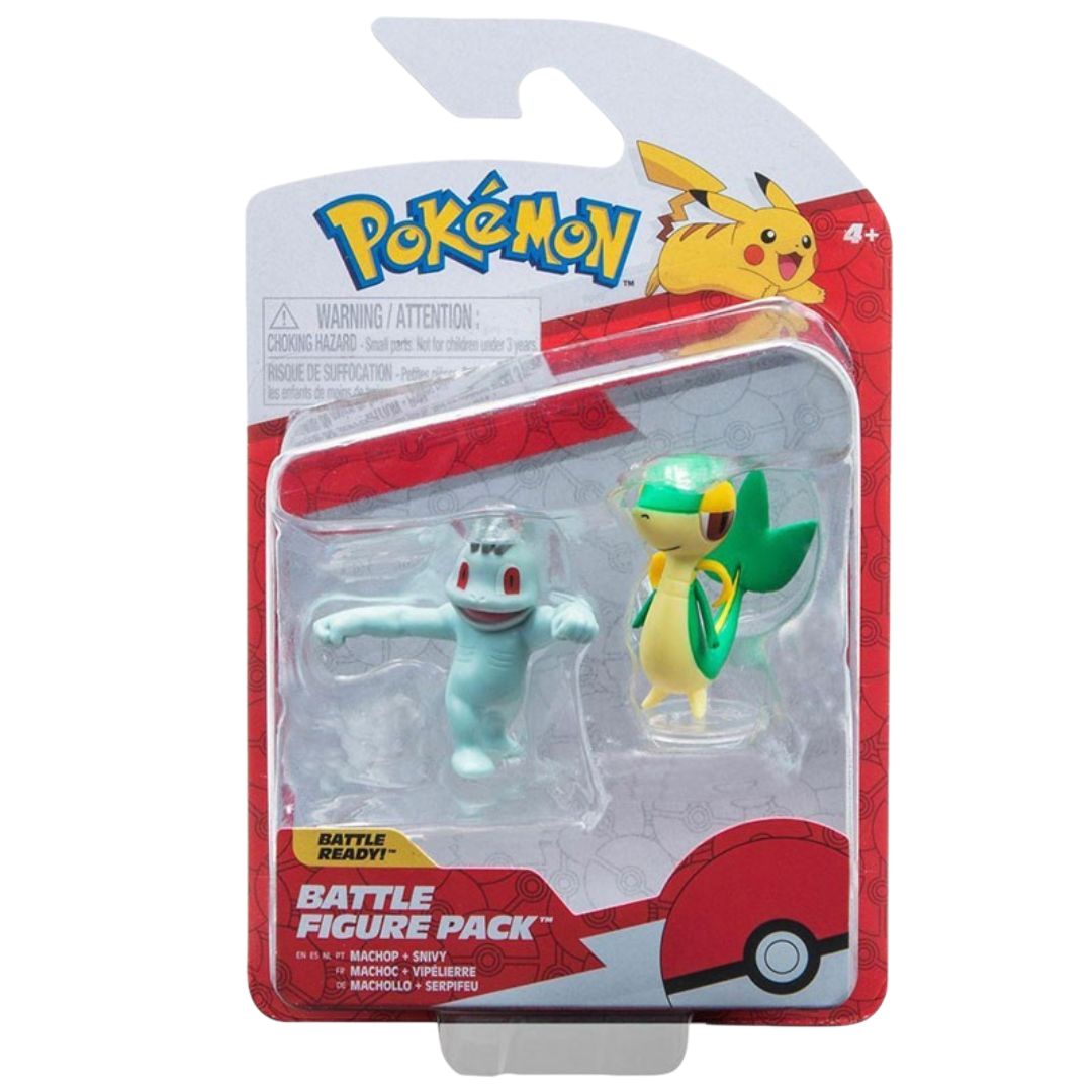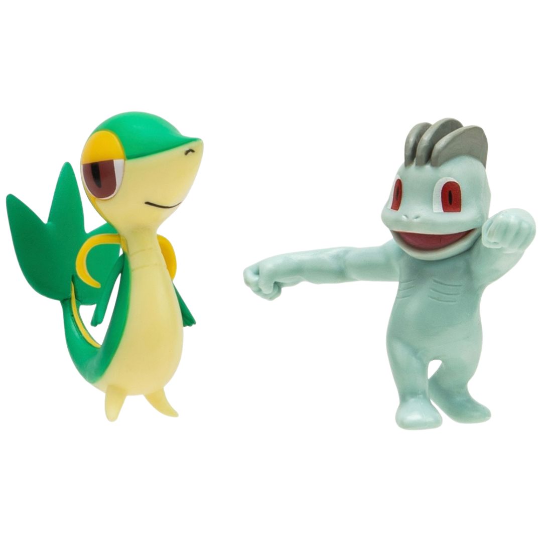 Crea las batallas más épicas con estas figura coleccionables de tus Pokémon favoritos: Snivy y Machop.