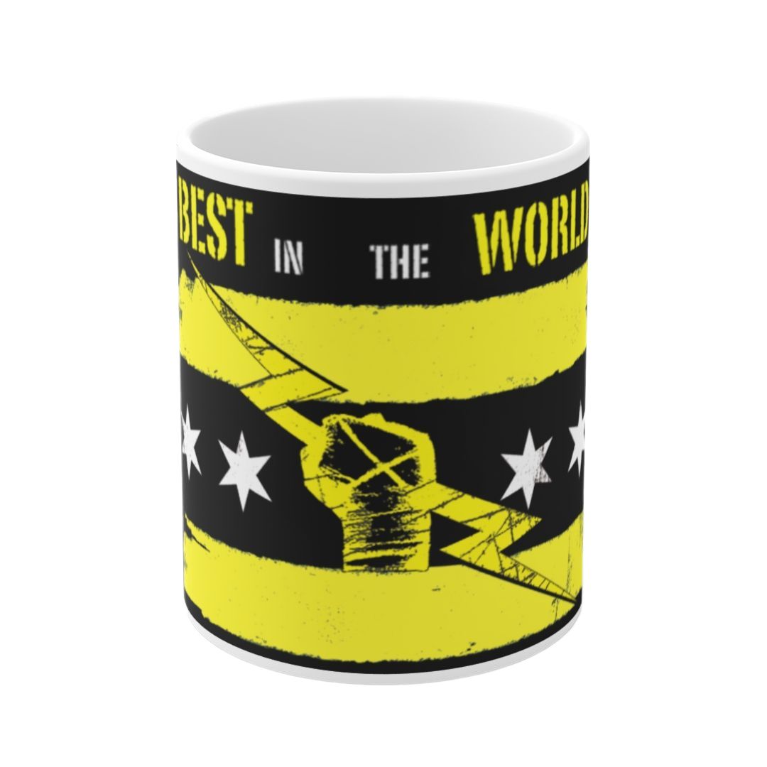 Revive la legendaria carrera de CM Punk en WWE con la Taza «Best In The World» con el logo amarillo.